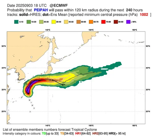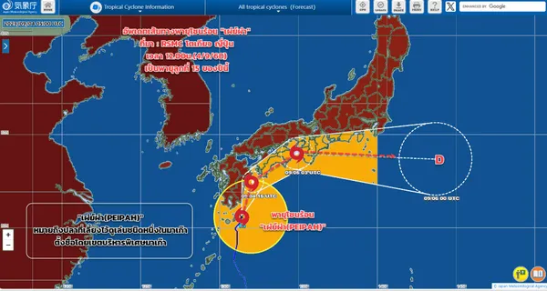 กรมอุตุนิยมวิทยา อัปเดตเส้นทางพายุโซนร้อน "เผ่ย์ผ่า (PEIPAH)" ช่วงเที่ยงวันนี้ ( 4 กันยายน 2568) พายุนี้อยู่ไกลจากประเทศไทยมากและไม่มีผลกระทบกับประเทศไทย แต่แจ้งเตือนผู้ที่จะเดินทางไปประเทศญี่ปุ่น ใน 1-3 วันนี้ ต้องตรวจสอบสภาพอากาศก่อนออกเดินทาง