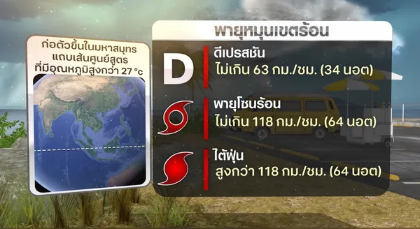 ช่วงกลางปีแบบนี้ อีกหนึ่งปัจจัยสำคัญที่ทำให้หลายพื้นที่ของประเทศไทยมีฝนตกหนัก นอกจากพายุฝนฟ้าคะนองทั่วไปแล้ว ยังต้องเฝ้าระวัง “พายุหมุนเขตร้อน” ซึ่งถือเป็นพายุขนาดใหญ่ที่มักก่อตัวในมหาสมุทร โดยเฉพาะมหาสมุทรแปซิฟิกตะวันตกที่มีการก่อตัวของพายุมากที่สุดในช่วงเดือนสิงหาคมถึงตุลาคม