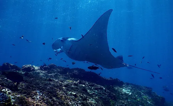 “กระเบนราหูยักษ์” (Giant Manta Ray) เป็นปลากระดูกอ่อน จัดอยู่ในกลุ่มปลากระเบนที่มีขนาดใหญ่ที่สุดในโลก โดยทั่วไปมีความกว้างของลำตัวประมาณ 2.2–2.4 เมตร แต่สามารถเติบโตได้มากถึง 5.5 เมตร ลักษณะเด่นคือมี ปากอยู่ด้านหน้า และมี แผ่นหนังบริเวณงอยปากที่งอเข้าหากัน ช่วยดักจับแพลงก์ตอนที่เป็นอาหารหลัก ใต้ขากรรไกรล่างของกระเบนราหูจะมีฟันเรียงกันเป็นแถวจำนวน 6–8 แถว ส่วนบริเวณใกล้หัวมีแถบสีขาวพาดเฉียงตัดกับสีดำของลำตัวคล้ายรูปตัว “Y” ซึ่งเป็นเอกลักษณ์เฉพาะ นอกจากนี้ยังมี ครีบหลังขนาดเล็กและหางยาวคล้ายแส้ แต่ไม่มีเงี่ยงพิษเหมือนปลากระเบนบางชนิด