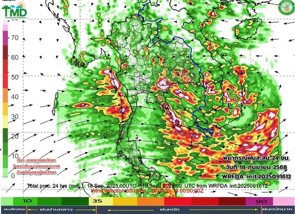 - พยากรณ์อากาศวันนี้ 18 กันยายน 2568 ไทยฝนเพิ่ม เตือน 4 จังหวัดตกหนักระวังน้ำท่วม