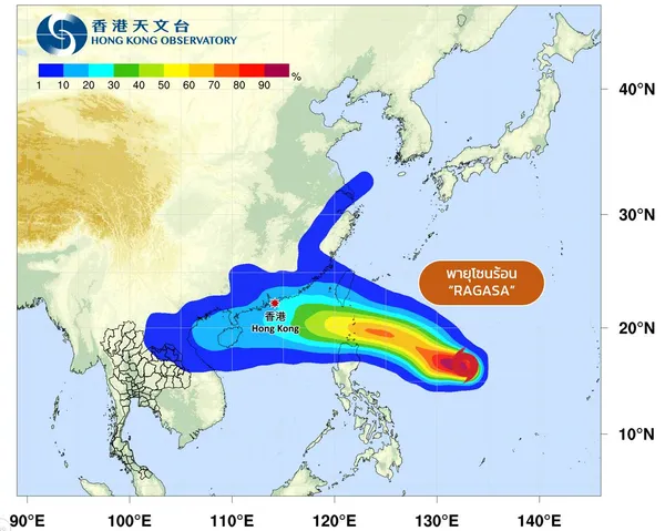 กรมอุตุนิยมวิทยา อัปเดตเส้นทางพายุโซนร้อนรากาซา มีแนวโน้มทวีกำลังแรงขึ้น อาจมีผลทางอ้อมต่อสภาพอากาศของไทย