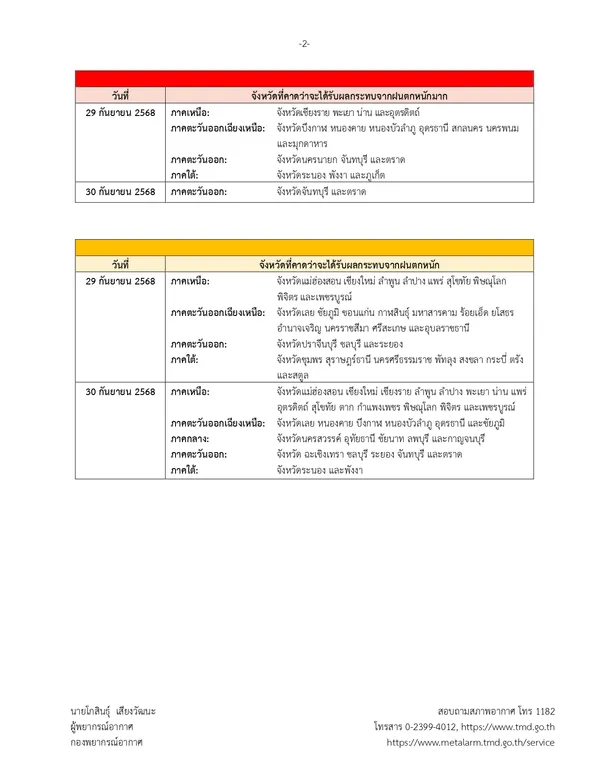 - พยากรณ์อากาศวันนี้ 29 กันยายน 2568 ประเทศไทยฝนตกหนักถึงหนักมากหลายพื้นที่