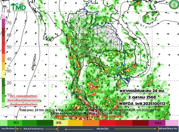 อนึ่ง พายุดีเปรสชันบริเวณมหาสมุทรแปซิฟิก ด้านตะวันออกของประเทศฟิลิปปินส์ มีแนวโน้มจะทวีกำลังแรงขึ้นเป็นพายุหมุนเขตร้อน และจะเคลื่อนลงทะเลจีนใต้ตอนบนในช่วงวันที่ 3-4 ต.ค. 68 คาดว่า ในช่วงวันที่ 5-6 ต.ค. 68 จะเคลื่อนขึ้นฝั่งบริเวณประเทศเวียดนามตอนบน