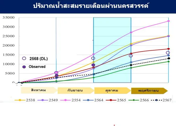 รศ.ดร.เสรี ศุภราทิตย์ ผู้อำนวยการศูนย์การเปลี่ยนแปลงภูมิอากาศและภัยพิบัติ มหาวิทยาลัยรังสิต โพสต์ผ่านเฟซบุ๊คส่วนตัว เตือนภาคกลางรวมทั้งกทม.และปริมณฑลเฝ้าระวังสถานการณ์ แม้ปริมาณน้ำปี 2568 จะไม่มากเท่าปี 2554 แต่ระดับน้ำสูงเท่าหรือมากกว่าในบางพื้นที่ เนื่องจากปัจจัยหลักคือกิจกรรมของมนุษย์ โดยระบุว่าข้อมูลชัดเจนว่าปริมาณน้ำหลากสะสมผ่าน จ.นครสวรรค์ปี 2568 ณ เดือนกันยายน มีประมาณ 62% (9,255 ล้าน ลบ.ม.) ของปี 2554 อยู่ที่ 15,000 ล้าน ลบ.ม.) ผมได้ใช้ AI (DL) ในการคาดการณ์ปริมาณน้ำพบว่าปริมาณน้ำหลากจะไม่ถึงปี 2554 และถ้าจะไต่ถึงระดับปี 2554 ต้องมีพายุเข้ามาอีก 2 ลูก ที่เหนือเขื่อนภูมิพล และเขื่อนสิริกิติ์ ซึ่งปัจจุบันจะมีพายุ 1 ลูก คือ “แมตโม” เข้ามาตอนบนซึ่งยังต้องติดตามสถานการณ์ และแม้ว่าเขื่อนสิริกิติ์จะมีปริมาณกักเก็บปัจจุบันประมาณ 95% ปริมาณการระบายจะไม่มากถึงวันละ 50 ล้าน ลบ.ม.ประกอบกับเขื่อนภูมิพลก็จะไม่มีการระบายน้ำมากถึงวันละประมาณ 130 ล้าน ลบ.ม. เหมือนปี 2554 สรุปจะไม่มีปริมาณน้ำหลากเท่าปี 2554