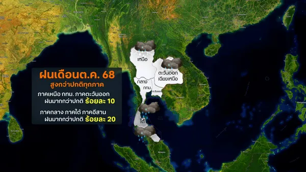 - 9-16 ต.ค. เตือนฝนหนัก เฝ้าระวังลุ่มน้ำภาคกลาง ทั้งน้ำเหนือ น้ำฝน และน้ำหนุน