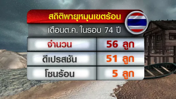 แม้เดือนตุลาคมจะเข้าสู่ช่วงปลายฤดูฝน แต่ยังคงเป็นเดือนที่ต้องจับตาสถานการณ์พายุอย่างใกล้ชิด เนื่องจากจากสถิติของกรมอุตุนิยมวิทยาพบว่า เดือนตุลาคมเป็นเดือนที่มีพายุเคลื่อนเข้าสู่ประเทศไทยมากที่สุดในรอบปี
