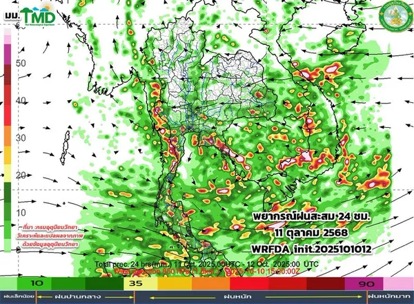 - พยากรณ์อากาศวันนี้ 11 ตุลาคม 2568 ทั่วไทยยังมีฝน “กทม.ตกหนัก” 70% ของพื้นที่