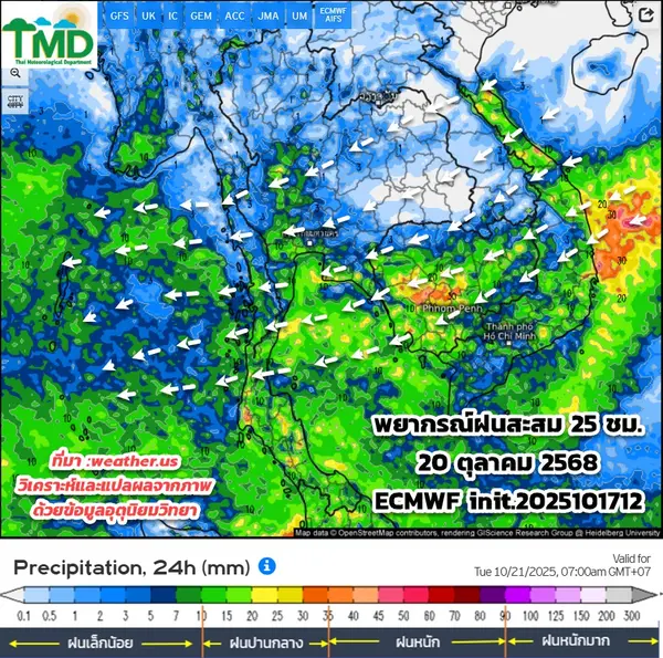 ข้อควรระวังในช่วงวันที่ 21 – 24 ต.ค. ขอให้ประชาชนบริเวณประเทศไทยตอนบน โดยเฉพาะภาคเหนือ และภาคตะวันออกเฉียงเหนือ ดูแลรักษาสุขภาพเนื่องจากสภาพอากาศที่เปลี่ยนแปลง