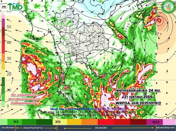 - พยากรณ์อากาศวันนี้ 20 ตุลาคม 2568 ประเทศไทยฝนน้อยลง กทม. ฝนตก 40% ของพื้นที่