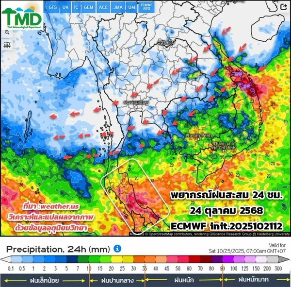 - พยากรณ์อากาศวันนี้ 22 ตุลาคม 2568 เตือนภาคใต้เตรียมรับมือฝนตกหนัก