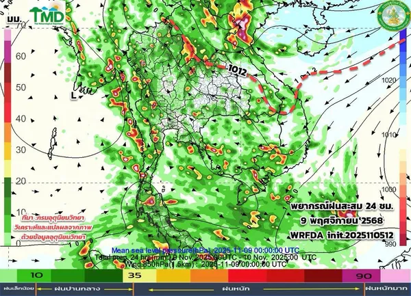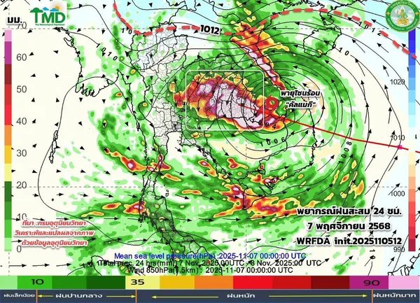 - กรมอุตุนิยมวิทยา เตือนฉบับ 1 “พายุคัลแมกี” ไทยมีฝนเพิ่มขึ้น-ฝนตกหนักถึงหนักมาก 7-9 พ.ย. 2568