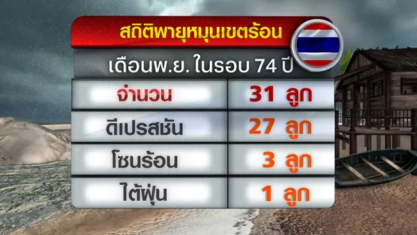 แม้จะเข้าสู่เดือนพฤศจิกายนซึ่งถือเป็นช่วงต้นฤดูหนาวของไทย และโดยปกติถือเป็นช่วงสิ้นสุดฤดูพายุไต้ฝุ่นในมหาสมุทรแปซิฟิกแล้วก็ตาม แต่ข้อมูลสถิติจากกรมอุตุนิยมวิทยาพบว่า เดือนนี้ยังมีโอกาสที่พายุหมุนเขตร้อนจะเคลื่อนเข้าสู่ประเทศไทยได้