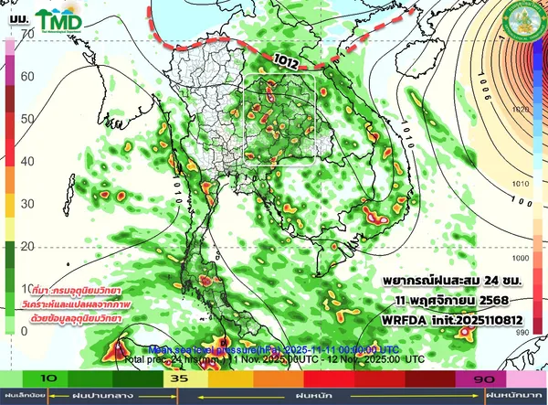 - พยากรณ์อากาศวันนี้ 8 พฤศจิกายน 2568 ฝนฟ้าคะนองทั่วไทย 60-80%