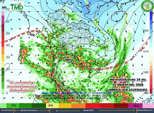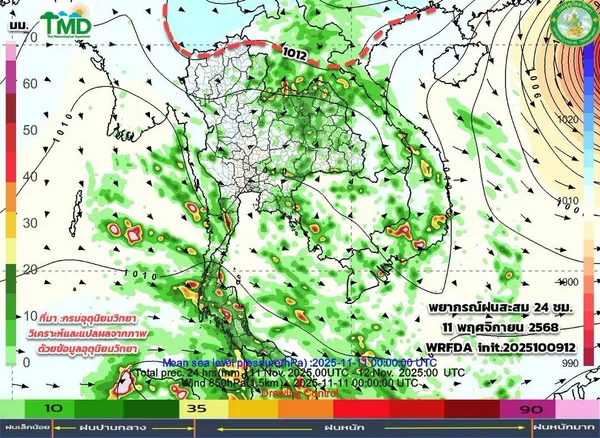 - พยากรณ์อากาศวันนี้ 10 พฤศจิกายน 2568 ประเทศไทยฝนลดลง-มีฝนฟ้าคะนองบางแห่ง
