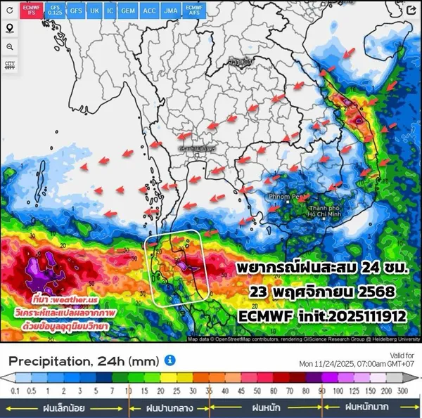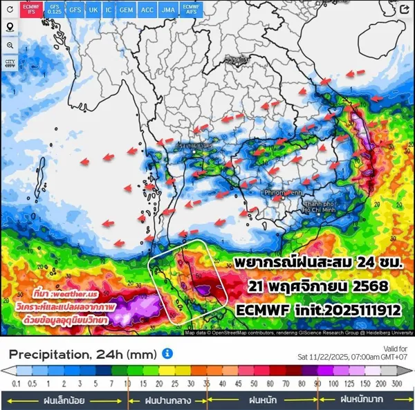 - พยากรณ์อากาศวันนี้ 20 พฤศจิกายน 2568 อากาศเย็นอุณหภูมิลด ใต้ฝนตกหนัก!