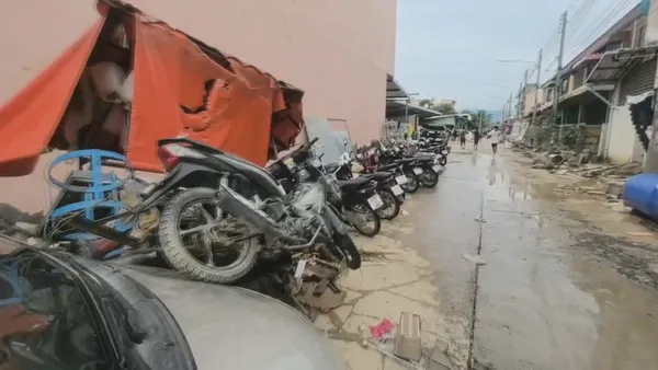 เปิดภาพมุมสูงของทีมกู้ภัยฮุก 31 โคราช ที่ลงพื้นที่ช่วยประชาชนที่เดือดร้อนน้ำท่วมในเขตชุมชนสะพานดำ ตำบลคลองแห อำเภอหาดใหญ่ ซึ่งพบว่าระดับน้ำได้ลดลงแล้ว แต่มีบางจุดที่น้ำท่วมขัง และพบร่องรอยความเสียหายเป็นวงกว้าง ประชาชนได้เข้าสำรวจความเสียหายของบ้านเรือนและทรัพย์สินที่ถูกกระแสน้ำซัดและท่วมขังเป็นเวลาหลายวัน