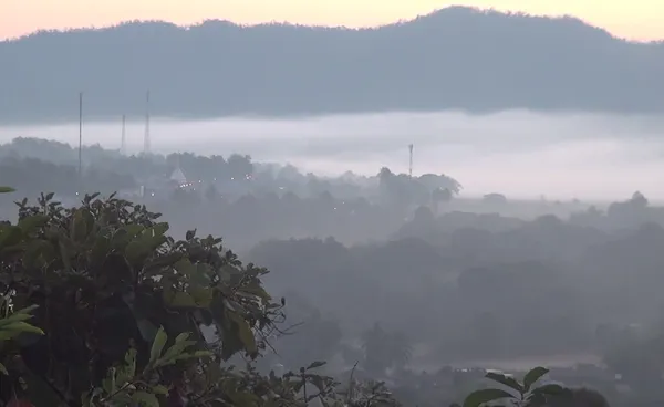 สภาพอากาศในพื้นที่ จ.ลำปางหนาวเย็นมากไปทั่วบริเวณ และมีหมอกหนาวลงมาปกคลุม โดยเฉพาะพื้นที่อำเภอทางตอนบนของจังหวัด อย่างที่ อ.เมืองปาน จ.ลำปาง เช้าวันนี้ อุณหภูมิพื้นราบ ลดต่ำลงอยู่ที่ 9 องศาเซลเซียส นับเป็นสภาพอากาศที่หนาวมาก ในปีนี้ โดยหากมองจากภาพมุมสูงในพื้นที่ ต.เมืองปาน อ.เมืองปาน จ.ลำปาง พบเห็นทะเลหมอกที่สวยงามเกิดขึ้นในตอนเช้า มองเห็นแสงแรกของวัน และวิวทิวทัศน์ที่สวยงามของแนวเทือกเขาสูง ในเขตห้ามล่าสัตว์ป่าดอยพระบาท ซึ่งด้านบนเป็นที่ตั้งของวัดพระพุทธบาทปู่ผาแดง หรือที่ประชาชน เรียกว่า ดอยปู่ยักษ์ หรือที่รู้จักกัน ในนาม วัดพระธาตุเจดีย์ลอยฟ้า