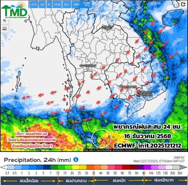 - ภาคใต้มรสุมแรง ระวังฝนตกหนัก 11-16 ธ.ค. ส่วนลมหนาวรอบใหม่เริ่ม 14 ธ.ค.นี้