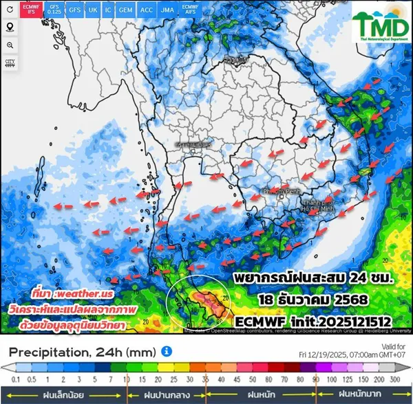 - พยากรณ์อากาศวันนี้ 15 ธันวาคม 2568 ภาคใต้ตอนล่างฝนตกหนักต่อเนื่อง