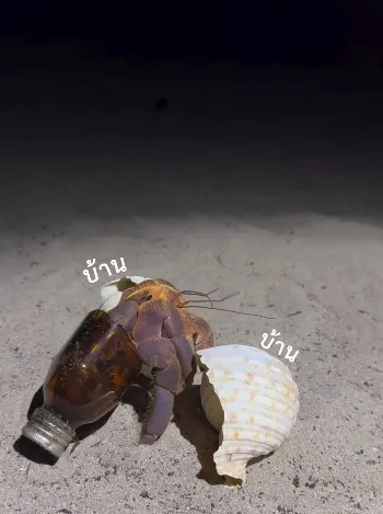 ภาพ: “ปูเสฉวน” ไร้บ้านใช้เศษขวดแก้วเป็นบ้าน น้องต้องการเปลือกหอยเพื่อเป็นบ้านหลังใหม่
