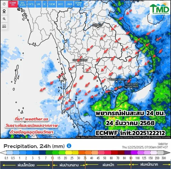- “ลมหนาว” รอบใหม่ ปกคลุมไทยตอนบน 25-27 ธ.ค. เตือนภาคใต้ตอนล่างระวังฝนหนัก