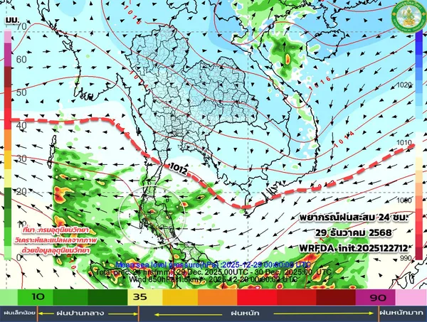 - ลมมรสุมแรงเตือนภาคใต้ฝนหนัก ไทยตอนบนเย็นลง 1-4 องศาฯ หลัง 29 ธ.ค.อากาศอุ่นขึ้นเล็กน้อย
