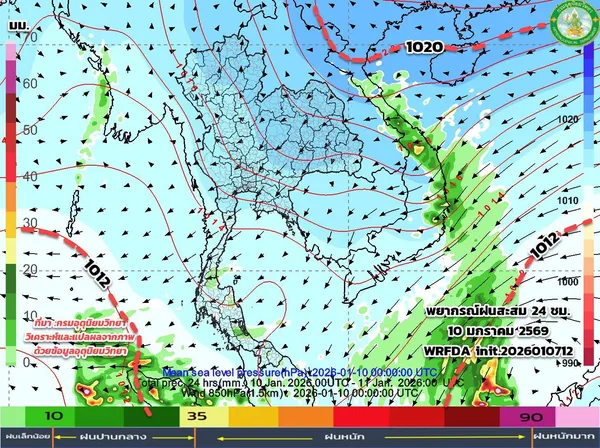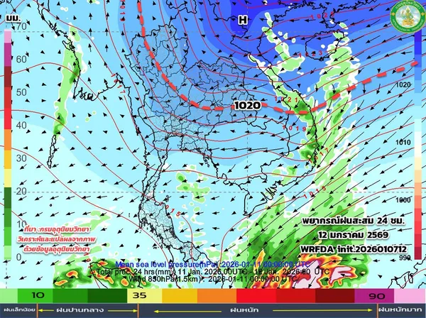 ในช่วงวันที่ 11 – 13 ม.ค. 69 ขอให้ประชาชนบริเวณประเทศไทยตอนบน ระมัดระวังการสัญจรผ่านบริเวณที่มีหมอกไว้ด้วย