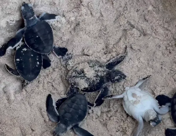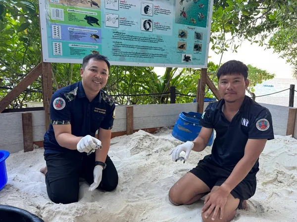 นายศิริวัฒน์ สืบสาย หัวหน้าอุทยานแห่งชาติหมู่เกาะสิมิลัน เผยว่า เจ้าหน้าที่ได้ติดตาม และเก็บข้อมูลการฟักไข่ของลูกเต่าตนุอย่างใกล้ชิดตั้งแต่วันแรกที่แม่เต่าที่มีชื่อว่า "สายฝน" ขึ้นมาวางไข่บริเวณชายหาดทรายขาวบนเกาะเมียง เมื่อวันที่ 10 พ.ย.68 ที่ผ่านมา จากไข่เต่าตนุทั้งหมด 62 ฟอง สามารถฟักตัวสำเร็จได้ถึง 51 ตัว คิดเป็นอัตราการฟักร้อยละ 82.26 ซึ่งถือว่าสูงกว่าค่าเฉลี่ยทั่วไป โดยใช้ระยะเวลาฟักประมาณ 66 วัน ก่อนที่ลูกเต่าน้อยเหล่านี้จะทะยานออกจากรังทรายและเริ่มต้นการเดินทางสู่ท้องทะเลอันดามันด้วยสัญชาตญาณแห่งการอยู่รอด