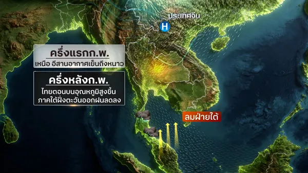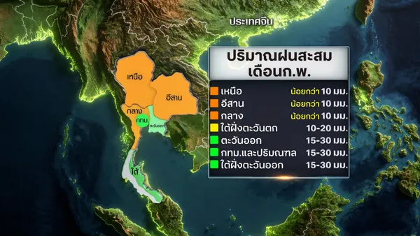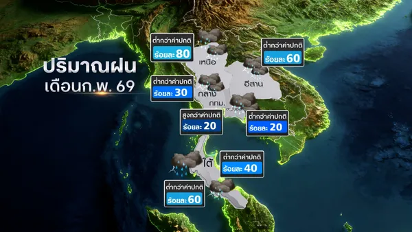 - พยากรณ์อากาศวันนี้ 6 กุมภาพันธ์ 2569 ไทยอากาศอุ่นขึ้น - ปลายสัปดาห์ฝนฟ้าคะนอง