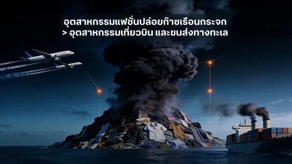 นอกจากนี้ ในแต่ละปียังมีไมโครไฟเบอร์จากเสื้อผ้าประมาณ 500,000 ตันถูกปล่อยลงสู่มหาสมุทร กลายเป็นมลพิษที่ส่งผลกระทบต่อระบบนิเวศทางทะเล ขณะเดียวกัน อุตสาหกรรมแฟชั่นยังเป็นแหล่งปล่อยก๊าซเรือนกระจกขนาดใหญ่ โดยมีการปล่อยคาร์บอนรวมมากกว่าการปล่อยก๊าซจากเที่ยวบินระหว่างประเทศและการขนส่งทางทะเลรวมกัน