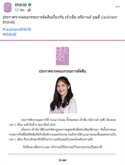 ภาพจาก Facebook Jaokhem BNK48ภาพจาก Facebook BNK48