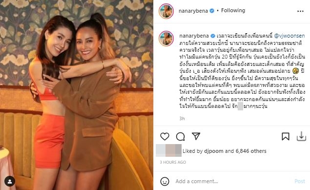 ทางด้านสาว "นานา ไรบีนา" ก็ได้โพสต์คลิปวิดีโอเช่นเดียวกัน พร้อมแคปชั่นว่า "ต่อกันติดเสมอ รักพวกXมากๆ and Happy birthday my love @vjwoonsen ❤️❤️❤️❤️ @paulataylorbuttery @janesuda @janienineeleven @ann_laisuthruklai"