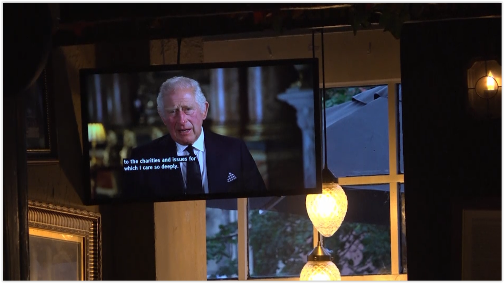 วันที่ 9 กันยายน สำนักข่าว เอพี รายงานว่า พระเจ้าชาร์ลส์ ที่ 3 เสด็จเข้าวังบักกิงแฮมในฐานะกษัตริย์ครั้งแรกท่ามกลางการต้อนรับอย่างอุบอุ่นของเหล่าพสกนิกร หลังจากนั้นเวลา 18.00น. ตามเวลาลอนดอน สำนักพระราชวังได้เผยแพร่เทปบันทึกภาพ พระราชดำรัสแรกอย่างเป็นทางการในฐานะพระประมุของค์ใหม่ ออกอากาศทางโทรทัศน์ของ สหราชอาณาจักร ความยาวกว่า 9 นาที โดยประชาชนจำนวนมากต่างรวมกันในร้านอาหารต่างๆ เพื่อชมประกาศครั้งสำคัญนี้พร้อมๆ กัน