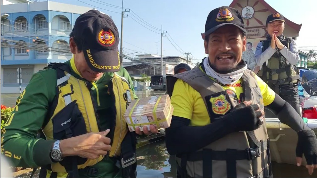 โดยก่อนที่จะลงพื้นที่ "ไทด์ เอกพันธ์ บรรลือฤทธิ์" ได้นำเงินสดจำนวน 1,000,000 บาท มามอบให้กับ "ท็อป บิณฑ์ บรรลือฤทธิ์" เพื่อนำไปช่วยเหลือประชาชนที่ได้รับผลกระทบต่อไป ซึ่งไทด์ ได้ออกมาเปิดเผยใน Facebook Live ว่า "เงินดังกล่าวที่นำมามอบให้ มาจากที่ตนได้ไปขายทะเบียนรถ ลงท้ายด้วย 9999 ที่ตนไปร่วมประมูลมาเมื่อ 4 ปีที่แล้ว"