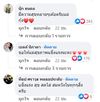 หลังจากที่โพสต์ดังกล่าวได้เผยแพร่ออกไปนั้น มีคนเข้ามากดถูกใจโพสต์นี้กว่า 23,700 คน โดยมีศิลปินคนลูกทุ่งเข้ามาอวยพรวันเกิดคุณแม่เป็นจำนวนมาก ทั้ง "ไอดิน อภินันท์" , "เบียร์ พร้อมพงษ์" , "เต๊ะ ตระกูลตอ" , "เบลล์ นิภาดา" , "นุ๊ก ธนดล" และ "ลำยอง หนองหินห่าว" เป็นต้น รวมถึงแฟนเพลงของหนุ่มมลำเพลิน ที่มาร่วมอวยพรวันเกิดในครั้งนี้อีกด้วย