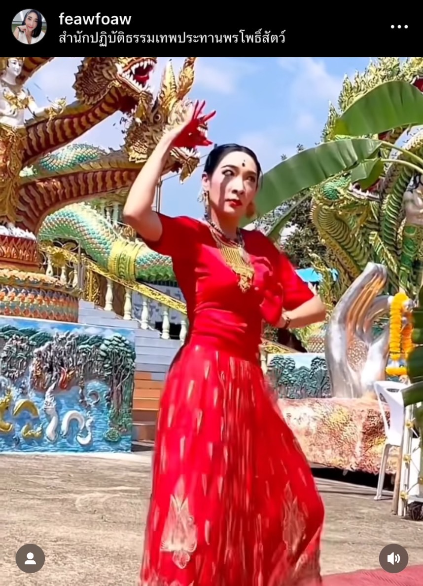 โดยอิมได้เผยว่า "ข้าพเจ้า.. #เพี้ยว์ฟ้าวขอน้อม..#เป็นตัวแทนของลูกหลานพญานาคทุกท่านในการ #รำถวายพญานาค ด้วยจิตที่ศรัทธา เคารพ รัก ณ โอกาสสิริมงคลนี้ มามี้ และ พี่เบลล์ น้อมนำอัญเชิญ ตลอดถึงกัลยาณมิตรทุกท่าน ด้วยจิตที่เปี่ยมล้น ขออัญเชิญ #พญานาคกัลยาณี #พญานาคมาริษา #พญานาคมนสา #พญานาคโสมาสีวิกา เทวีนาคราช ตลอดถึง สิ่งศักดิ์สิทธิ์ทุกพระองค์ ร่วมกุศลในครั้งนี้ เพื่อสถิตที่ #สำนักปฏิบัติธรรมเทพประทานพรโพธิสัตว์ ต.น้ำแพร่ อ.ห่างดง จ. เชียงใหม่ ซึ่งประดิษฐาน #พระพุทธเจ้าทันใจองค์ที่109 ลูกหลานพญานาคและ ผู้ที่มีจิตศรัทธา ส่งจิตน้อม ที่เป็นกุศลผลบุญ...ขอพร เน้อ สาธุ สาธุ สาธุ"