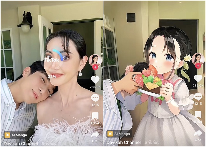 ได้ลองเล่นกันดูหรือยัง?? สำหรับแอพพลิเคชั่นดัง อย่าง TikTok ที่มีเอฟเฟคใหม่มาให้ทุกคนได้ลอง เอฟเฟค AI เปลี่ยนตัวเองให้เป็นการ์ตูนอนิเมะ ด้านคนบันเทิงก็ไม่พลาด วันนี้เราไปแอบส่องกันดูว่ามีใครบ้าง และภาพอนิเมะที่ออกมาจะสวย หล่อขนาดไหน มาดูกัน...