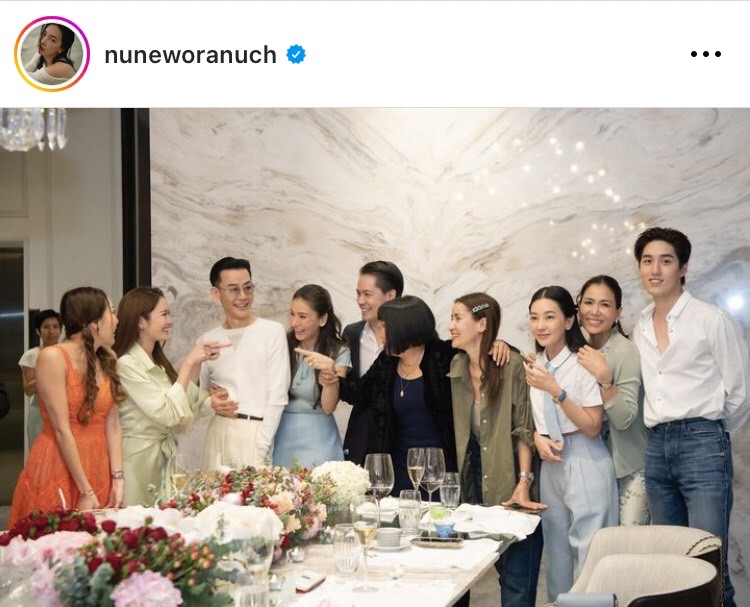 ภาพจาก IG : nuneworanuchซึ่งการฉลองครั้งนี้เต็มไปด้วยเสียงหัวเราะ ทางด้านต่อธนภพและนุ่นวรนุชก็ได้โชว์ลูกคอร้องเพลงร่วมกันอีกด้วย อีกทั้งยังมีการเปิดโต๊ะรับประทานอาหารพร้อมคุยกันอย่างสนุกสนาน มีการจับของขวัญสุดหรู ซึ่งมีผู้โชคดีก็คือพระเอกหนุ่มต่อธนภพที่ได้นาฬิกาโรเล็กซ์มาครอง ส่วนนางเอกสายหวานอย่างแอฟทักษอรก็ได้กระเป๋าใบหรู Hermes สะพายกลับบ้าน