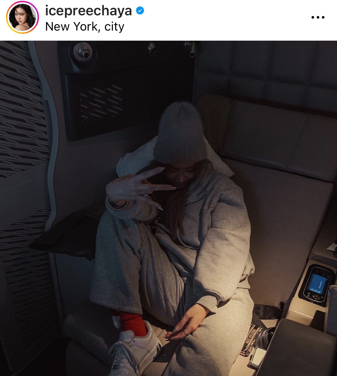 โดย ไอซ์ ได้แชร์ประสบการณ์นี้ลงในอินสตาแกรมส่วนตัว เธอโพสต์ภาพของตัวเอง ขณะกำลังจ้องมองรถอาหาร พร้อมกับเล่าเรื่องว่า "ผู้ประสบภัยหนาวและหิวมาก ไม่ได้มองกล้อง มองของกินถูกแล้ว มีเรื่องจะเล่าเธอว่าเราเก่งมั้ยมากับเสื้อตัวเดียว เพราะกระเป๋าดีเลย์ไปสองวัน ใช่ยังชุดเดิมถ้าสังเกต ออกจากสนามบินตัวเปล่าแบบ งงๆ ป่วยแบบ งงๆ เพราะออกมาเจออากาศ -13 และฝนตกในวันนั้น เสื้อกันหนาวไม่ใช่ของฉัน ฉันยืมเขามา กระเป๋าจ๋ามาเถอะ ขอร้อง ตัวเบามาก เพราะไม่มีอะไรเลยยกเว้นผู้ร่วมชะตากรรม"