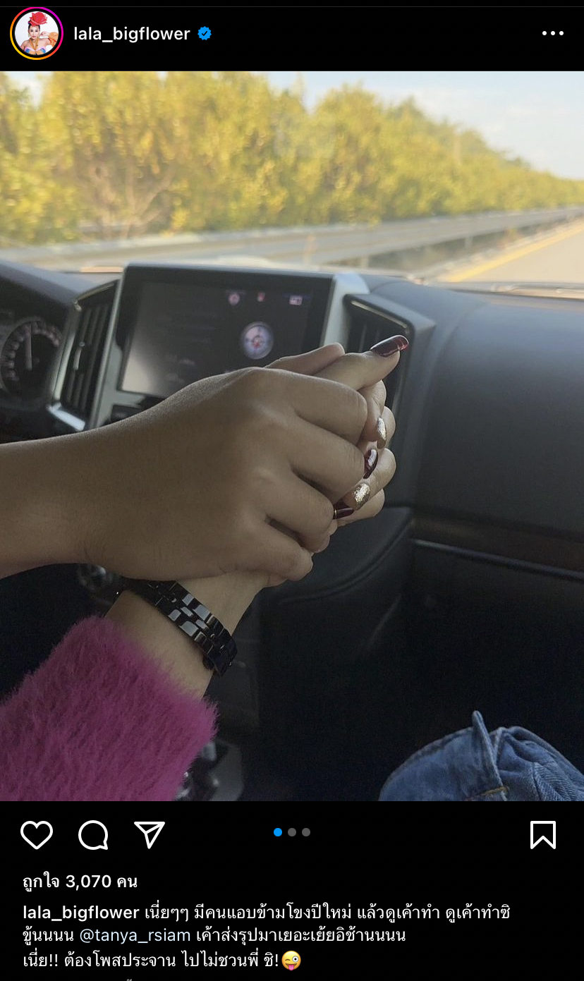 ซึ่งด้าน "ลาล่า" ได้ออกมาโพสต์ภาพ พร้อมแคปชั่นว่า "เนี่ยๆๆ มีคนแอบข้ามโขงปีใหม่ แล้วดูเขาทำ ดูเขาทำซิคุณ @tanya_rsiam เขาส่งรูปมาเยอะเย้ยดิฉัน