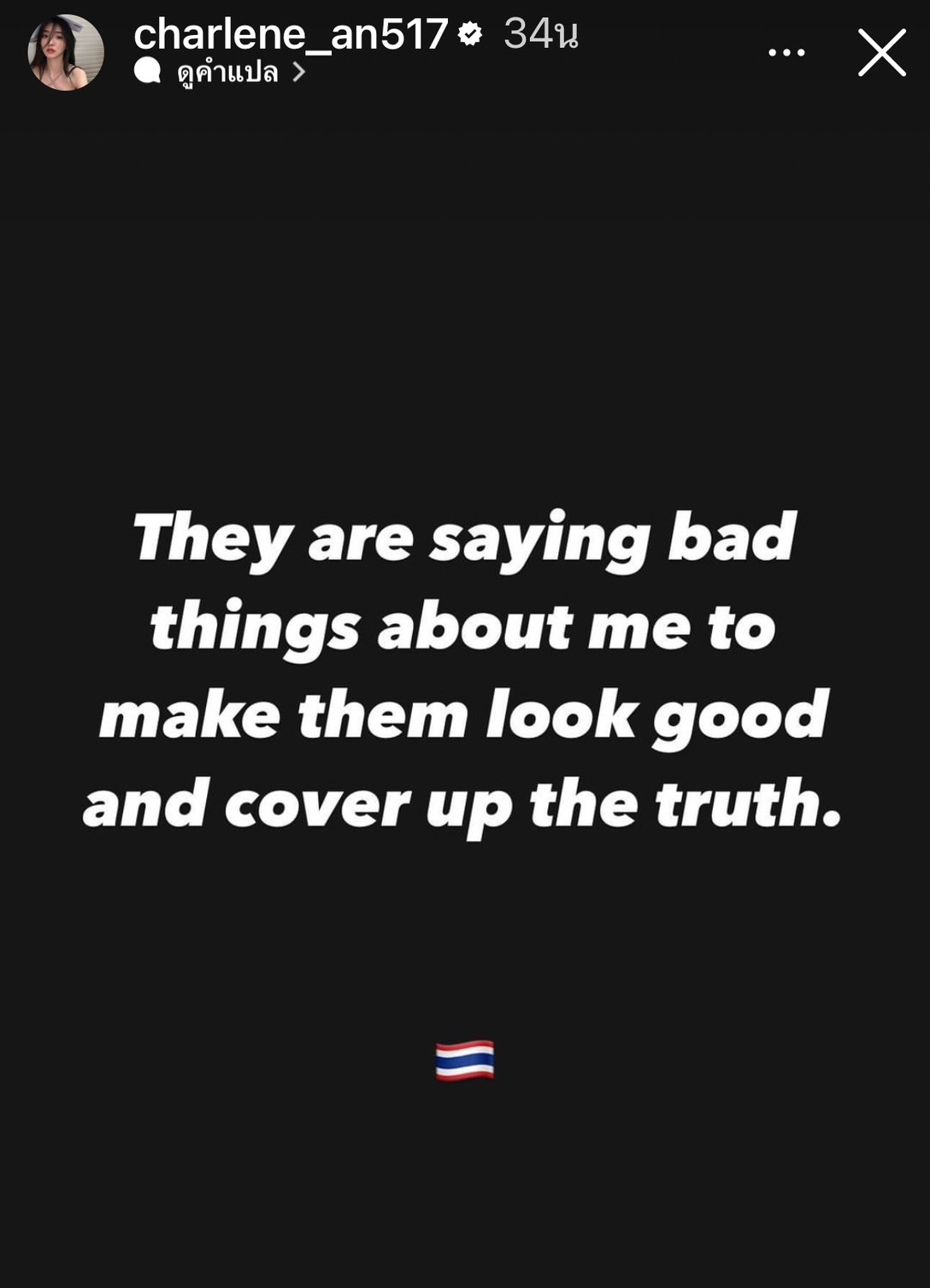 โพสต์ต่อมาเป็นข้อความภาษาอังกฤษที่ว่า "พวกเขาพูดจาในสิ่งที่ไม่ดีเกี่ยวกับตัวฉัน เพื่อทำให้พวกเขาดูดีและปิดบังความจริง"