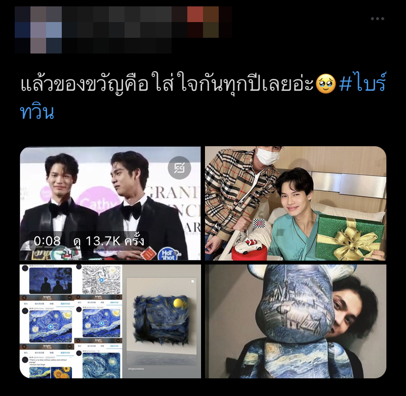 และทางแฮชแท็ก #ไบร์ทวิน ก็ได้รับความนิยมจนติดเทรนด์ทวิตเตอร์ อีกทั้งด้านแฟนคลับก็ได้ออกมาโพสต์ลงทวิตเตอร์เรื่องของขวัญนี้ไว้ว่า