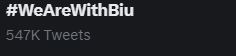 ด้านแฟนคลับของ บิว หลังจากที่มีข่าวออกมาก็พากันติด #WeAreWithBiu และ STAND TOGETHER WITH BUILD เพื่อร่วมส่งกำลังใจให้กับนักแสดงดัง ทำให้ขึ้นเทรนด์ทวิตเตอร์กันเลยทีเดียว
