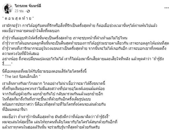 โดยล่าสุด "กบ ไกรภพ จันทร์ดี" มือกีตาร์ของวงได้ออกมาโพสต์ผ่านเฟซบุ๊คว่า
