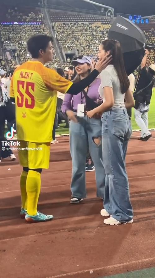 ไม่เสียชื่อฉายาหนุ่มคลั่งรักต้องยกให้ "อาเล็ก ธีรเดช" เพราะแทบจะตัวติดกับสาว "โบว์ เมลดา" พร้อมเสิร์ฟช็อตฟินทั้งลูบแก้ม ทั้งลูบหัว