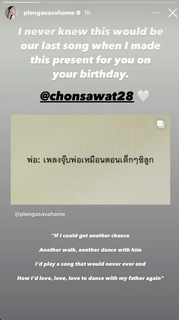 - "เพลง ชนม์ทิดา" โพสต์ถึงคุณพ่อ "เอ๋ ชนม์สวัสดิ์" ขอเป็นตัวแทนสานต่อสิ่งที่คุณพ่อสร้างไว้