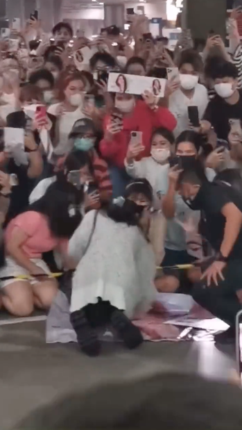 ซึ่งจากภาพนี้มีการนำมาเปรียบเทียบกับภาพที่ลงไปนั่งกับพื้นทั้งที่สวมรองเท้าบูทยาวนั่งได้ลำบาก เพื่อจะเซ็นป้ายแบนเนอร์ที่แฟนๆ ชาวไทยเตรียมมาต้อนรับที่สนามบินในการมาเยือนไทยเมื่อปลายปีที่แล้ว ซึ่งตอนนั้นแฟนๆ ในไทยต่างก็ทั้งอึ้งและประทับใจกับนางเอกคนนี้กันถ้วนหน้า