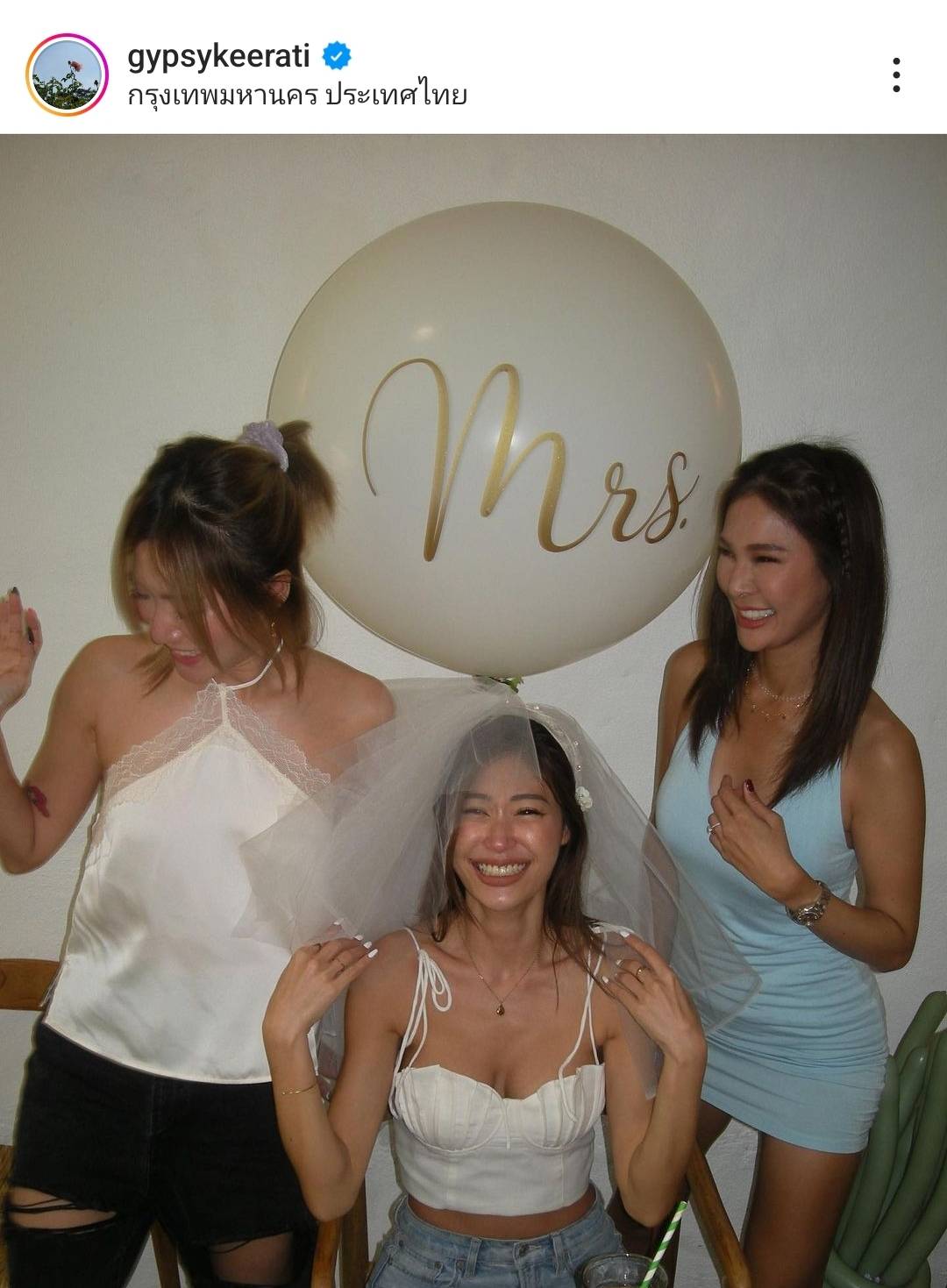 โดย "ยิปซี" ได้โพสต์ภาพสุดประทับใจ พร้อมแคปชั่นว่า "“ไม่คิดว่าจะมีไมเมนต์นี้ ขอบคุณเพื่อนๆทุกคนมากๆๆๆ น่ารักมากๆๆ ซึ้งในทุกดีเทล ความมินิมอล ความพาสเทล ความกุหลาบ ความคุมโทนให้เป็นงานเล็กๆกันเอง ที่อบอุ่น และสำคัญสุดคือเป็นตอนกลางวัน!!