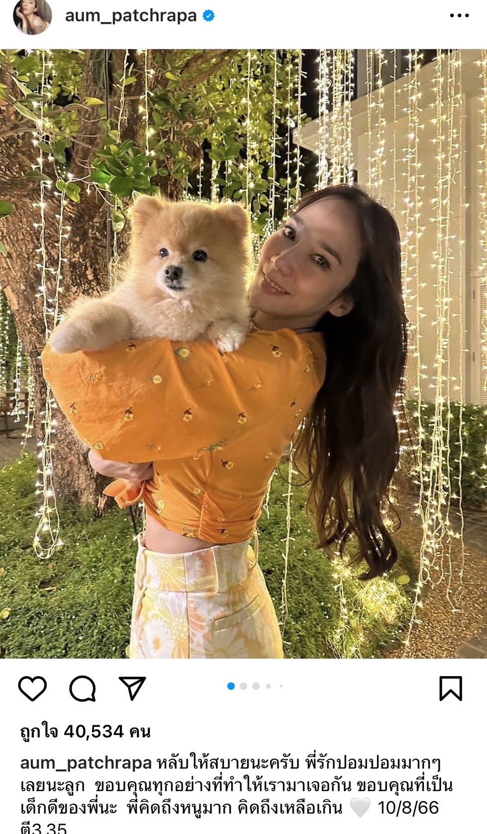 ล่าสุด เธอได้โพสต์ภาพสตอรี่ลงอินสตราแกรมส่วนตัว @aum_patchrapa ที่สูญเสียสุนัขตัวโปรดอีกตัวไป