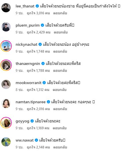 ขอแสดงความเสียใจ และ เป็นกำลังใจให้นักแสดงหนุ่ม "คริส พีรวัส แสงโพธิรัตน์" โพสต์เศร้า สุดอาลัย อาม่าจากไปอย่างสงบ วันที่น่ายินดี กลายเป็นวันที่เศร้าที่สุด รักนะครับ จะพยายามไม่ร้องไห้ จะเข้มแข็งและดูแลทุกคนอย่างดีนะอาม่า พักผ่อนนะครับ ทูตสวรรค์มารับอาม่าเที่ยวแล้ว จะอีกกี่ชาติ ขอเป็นหลานอาม่าตลอดไปเลยนะ" ด้านคนบันเทิง แห่คอมเมนต์ให้กำลังใจ หนุ่มคริส อย่างมากมาย